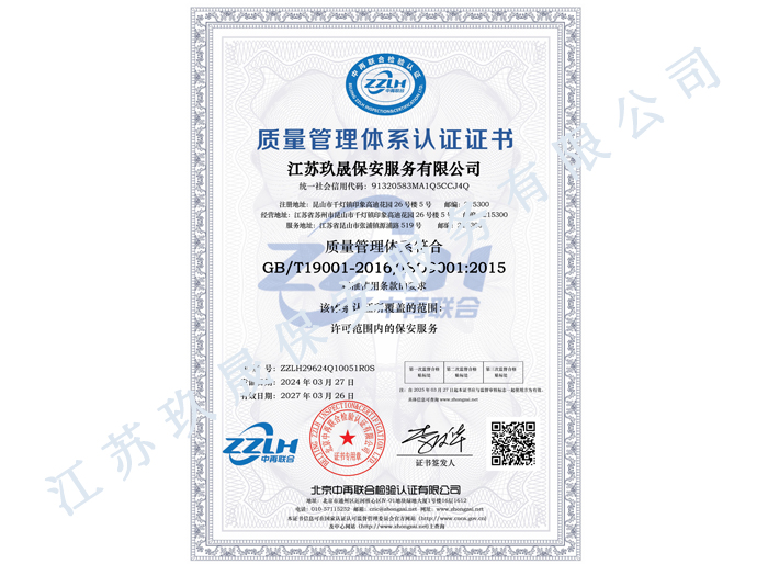 江蘇玖晟保安服務有限公司成立于江蘇省昆山市千燈鎮。注冊資金:5000萬,是擁有省公安廳頒發的保安服務許可證的企業【蘇公保服20170046】,也是昆山市保安協會常務理事單位。