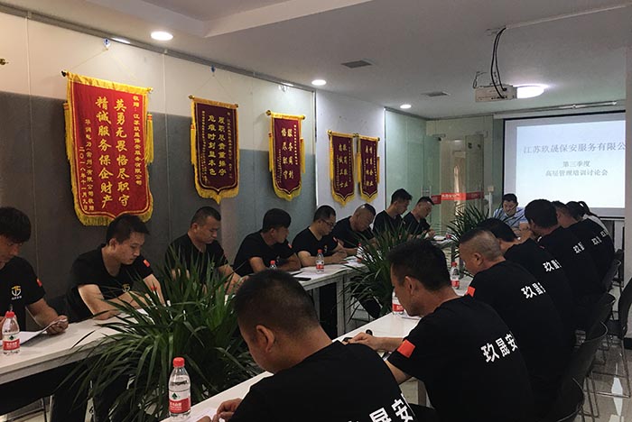 2020年7月29日我公司第三季度例會如期進(jìn)行,針對上結(jié)段工作總結(jié)匯報(bào)及下季度的工作安排做了詳細(xì)的分析及部署。另針對保安崗位職責(zé)制度、保安崗位工作標(biāo)準(zhǔn)、保安交接班的相關(guān)規(guī)定及注意事項(xiàng)、儀容儀表的規(guī)定和要求、文明用語的使用等方面,如何有效落地實(shí)施培訓(xùn)計(jì)劃做了詳細(xì)的研討。