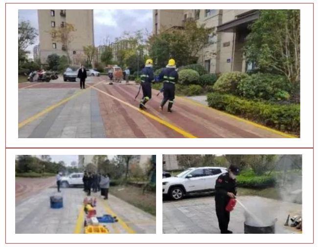 The personnel of the fire fighting team immediately rushed to the parking lot to gather, and immediately entered the scene to extinguish the fire after receiving the order. Use a shovel to shovel sand to put out the oil fire on the ground, and sprinkle fine sand directly on the oil cover to put out the fire. Use a 5kg dry powder extinguisher to shake the extinguisher upside down for a few times, then remove the safety pin, aim the nozzle at the root of the fire, and press the switch to extinguish the fire. After the demonstration, the participants will also participate in, learn and use.