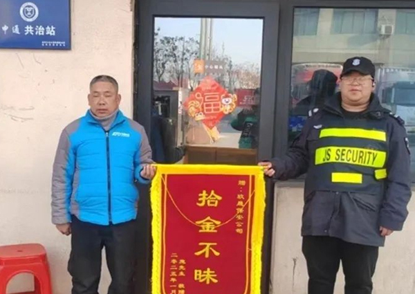 In the Lecheng Ping'anli project, the security guards of Jiangsu Jiusheng Security Company stayed at their posts and won praise from customers with their good deeds. They have repeatedly found valuable items and promptly kept them safe, returning them to their rightful owners, demonstrating their noble character. In addition, they are also enthusiastic about helping people send elderly people who have fallen home.