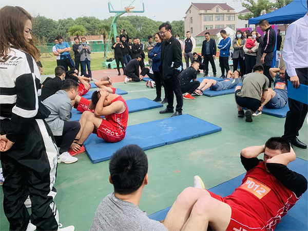 ?男子組仰臥起坐、俯臥撐