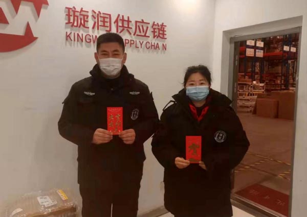 每到一處,張海龍先生向執勤隊員送上新年紅包,祝他們新春愉快、身體健康、闔家幸福。他強調,一定要嚴格遵守保安員執勤值守紀律,特別是疫情防控,嚴格按照區委、區政府及服務單位要求的文件落實,督導各崗位須密切注意外來人員進出,掃碼、測溫、一米安全線等各項防疫措施必須落實到位,確保節日期間無任何事故發生。