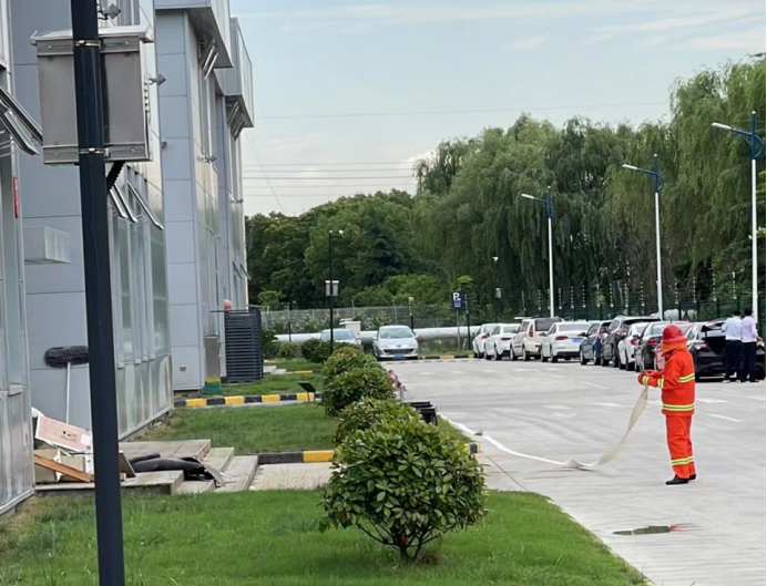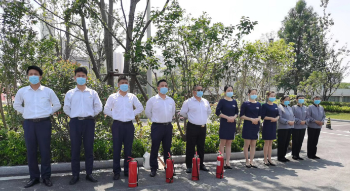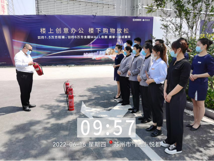 由昆山保安公司玖晟保安的各項目負責人宣布:“項目突發事件、消防滅火及人員應急疏散演練現在開始”。