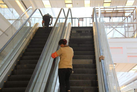 商場電梯清潔主要檢查電梯箱、各層電梯門軌道、顯示屏、扶梯、梯廳是否干凈無塵,電梯箱是否干凈無雜物、污漬。